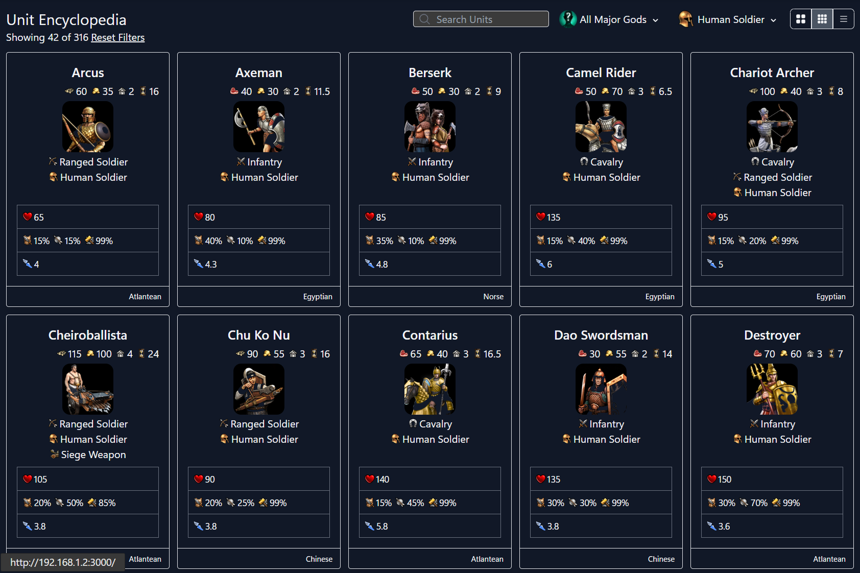 Unit stats and information